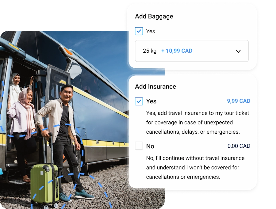 - Integrated tools for cross-selling and upselling allow you to offer extras (e.g. additional baggage, upgrades, insurance) at checkout, naturally increasing the average revenue per booking.