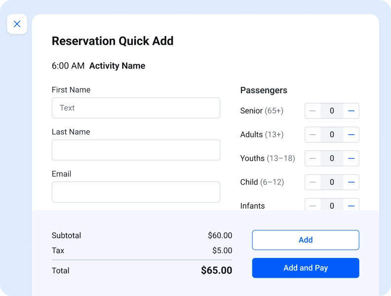 Our platform is built for a wide range of tourism businesses. If you sell time- or seat-based experiences, Zaui is for you. This includes: