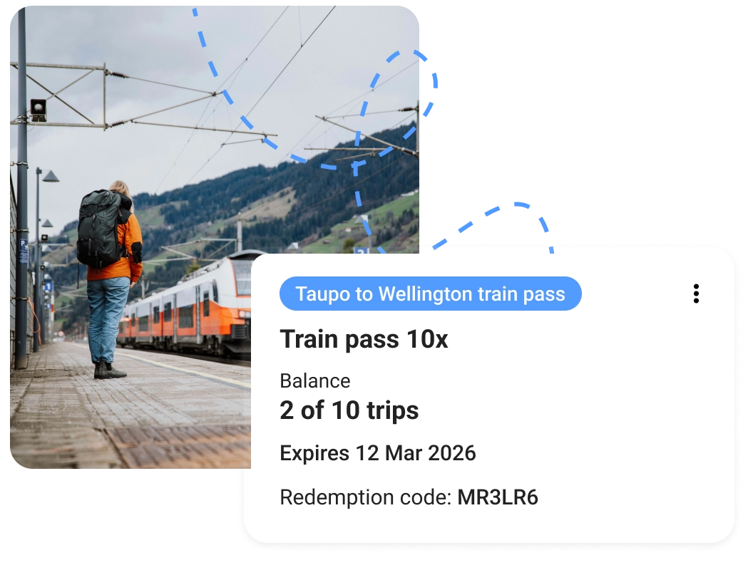 Sell trip‑based or duration‑based passes that link directly to guest profiles and bookings Guests enjoy savings and flexibility, and you keep control over entitlements without extra admin. Perfect for hop‑on hop‑off tours, commuter passes, and custom TravelPass itineraries, all integrated into your booking flow.