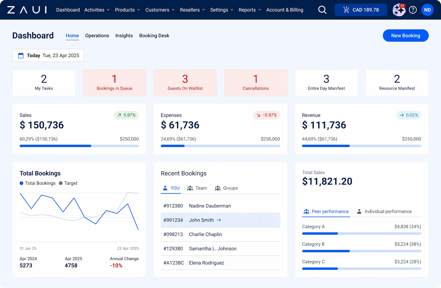 Zaui Reporting & Analytics is a powerful platform that provides operators with real-time insights into bookings, revenue, and operations.