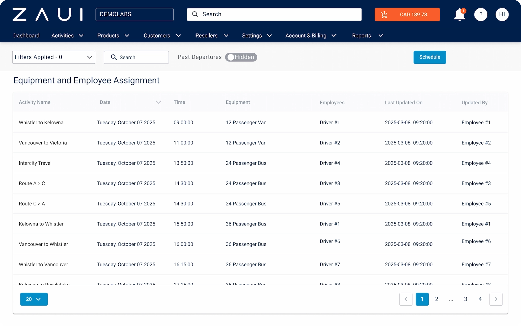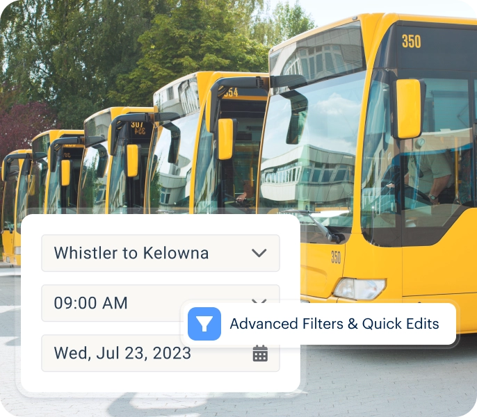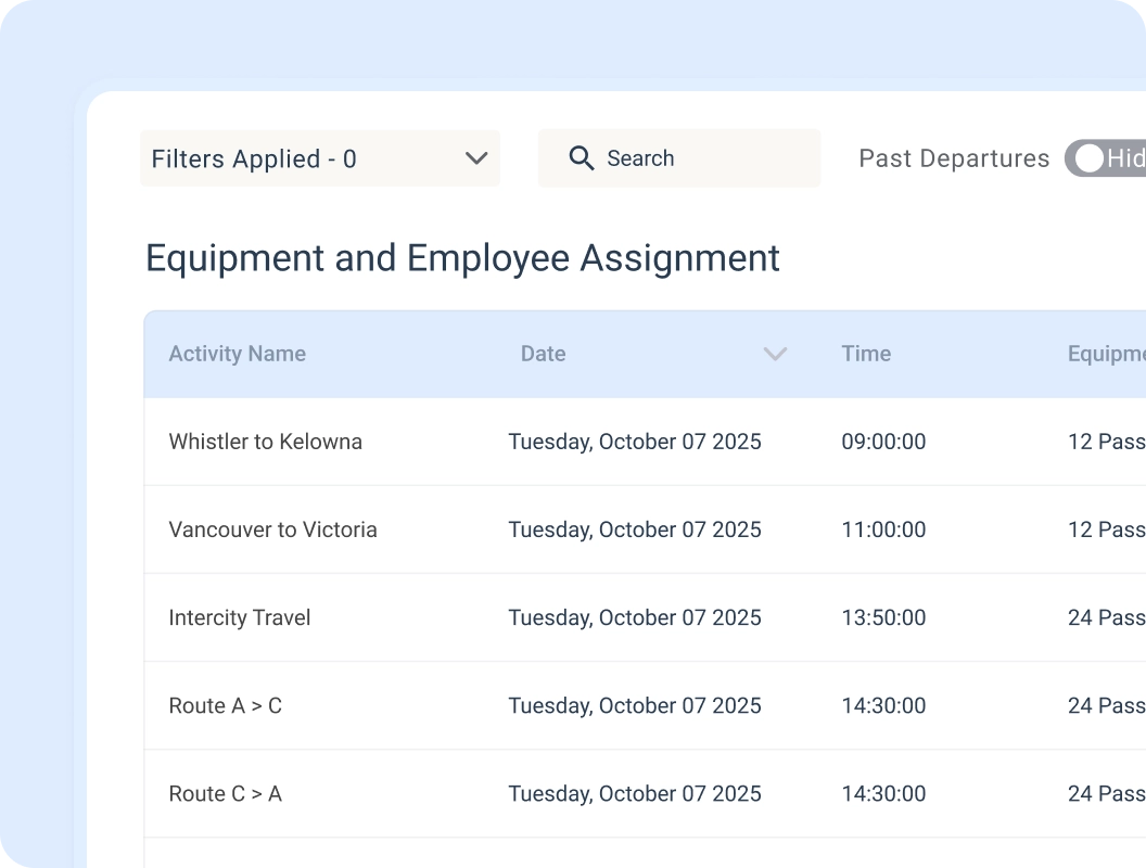 - Easily see which vehicles and drivers are available and assign them to multiple departures within the same activity.