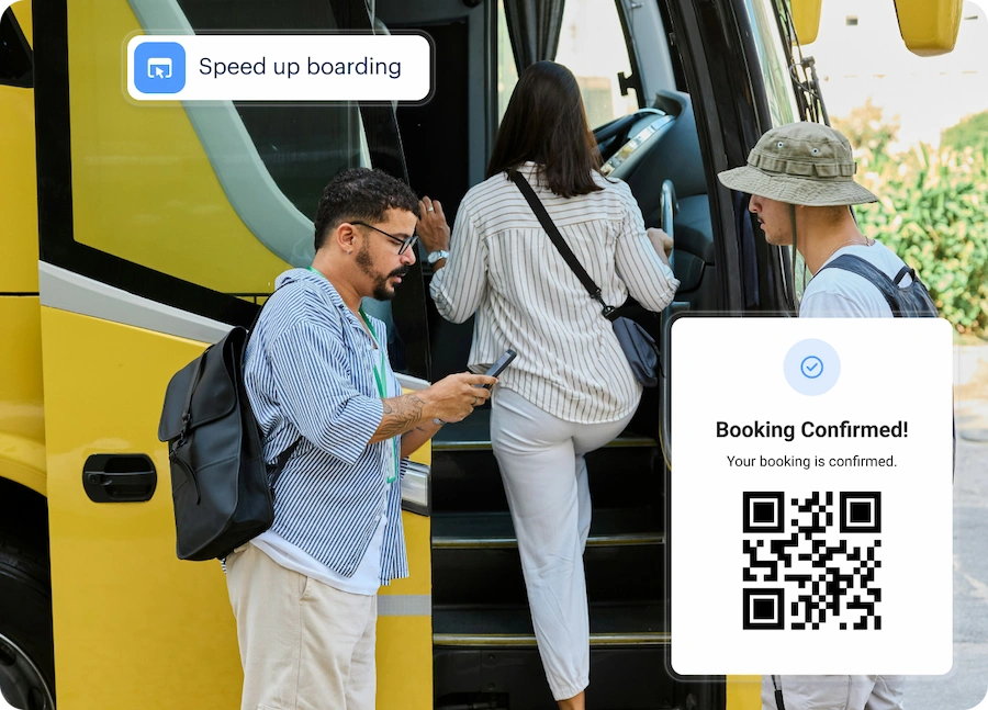 Scan QR codes for fast and easy boarding. - Real-Time Scheduling
